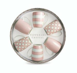 Bone China Mugs Set of 6 Spots & Stripes Pink