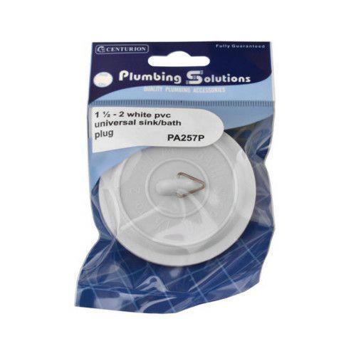 White PVC sink and bath plug. SIZE: Covers 37 – 50mm / 1½” – 2″ plug holes COLOUR: White PVC sink and bath plug Pre-packed Use in conjuction with sink, basin or bath chain
