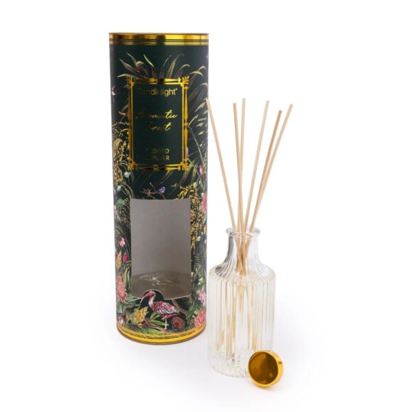 Immerse yourself in the enchanting ambiance of our 150ml Chinoiserie Dark Green Reed Diffuser in the Aromatic Forest fragrance. Crafted to capture the essence of a lush forest, this diffuser gently disperses a harmonious blend of woody and aromatic notes into your space. The deep, dark green design adds an element of sophistication to your decor while ensuring a consistent infusion of this captivating scent. Let the reeds work their magic, gracefully scenting the air and leaving an enduring impression of tranquility and natural beauty. Embrace the allure of Aromatic Forest with this chic and versatile reed diffuser, an essential addition to your ambiance-enhancing collection.