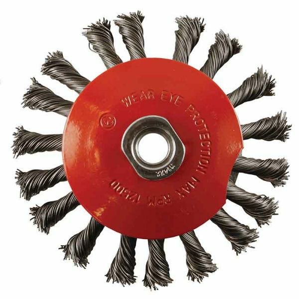 The bevelled (or conical) shape of the brushes makes them ideal for irregular surfaces with edges or cracks. The Twisted Knot version is a very aggressive brush ideal for removing slag and rust.