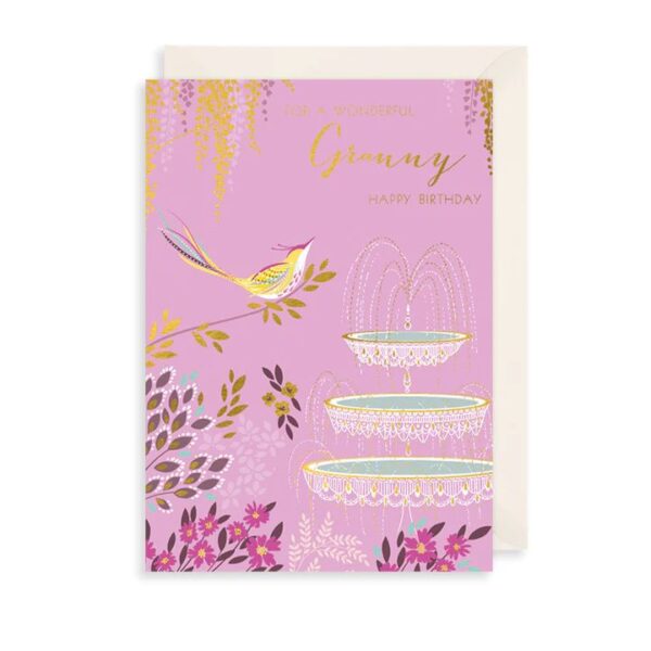 Say happy birthday to your granny with this beautiful card. This card features a bird perched near a water fountain and reads ‘To a wonderful Granny, happy birthday’.