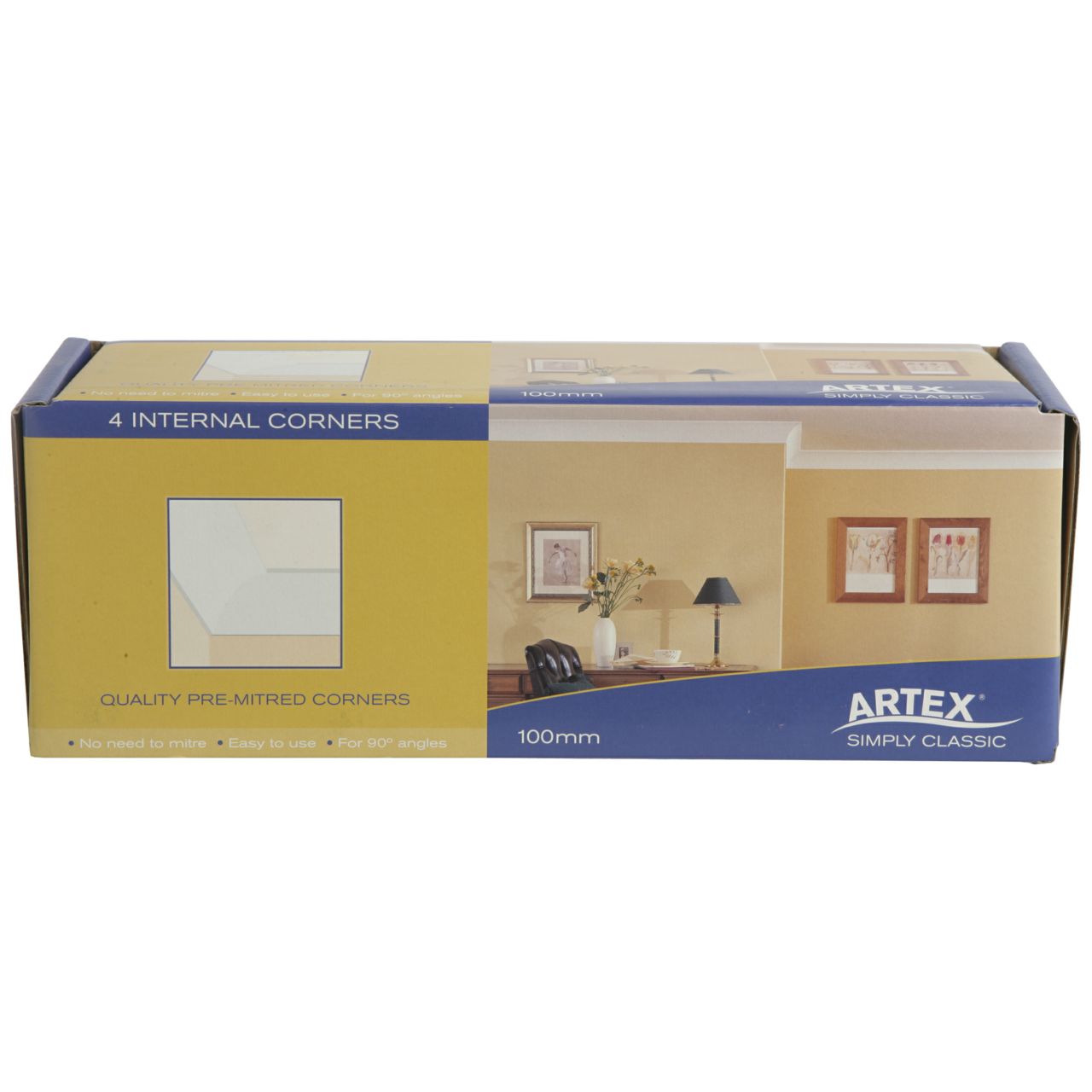 Plastic block to aid the cutting of plaster coving for external and internal corners.