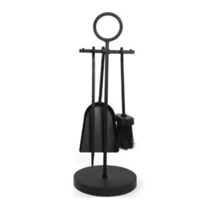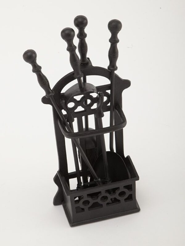 5 Piece Caged Basket Heavy Companion Set – With Poker Brush Tongs And Shovel
