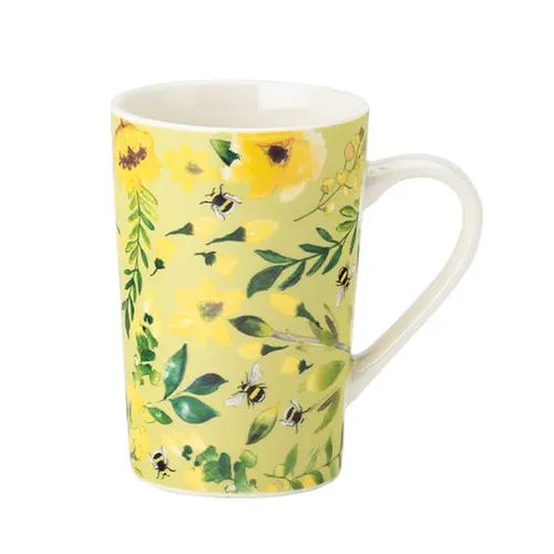 The English Tableware Company Bee Beautiful Latte Mug in Green is perfect for enjoying your morning brew in a tall mug with a generous-sized handle.