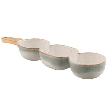 This fun and functional server from BelleekLiving is perfect for sharing a selection of your three favourite snacks with your friends and family. The stoneware features on trend reactive glazes meaning each piece will have its own individual characteristics and artisanal feel with flowing blue grey tones and mottled effects; no two pieces are the same. Finished with a contrasting Bamboo wood handle the snack server comes in a BelleekLiving box making it a great gift for the Christmas season.