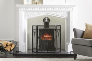 Add a touch of elegance to your fireplace with the Spark Guard. A perfect addition to any home, it is designed with an elegant black finish and is made of sturdy material. See through panels ensure visibility during the night, and the ring handle adds grip making it easy to move around or adjust.