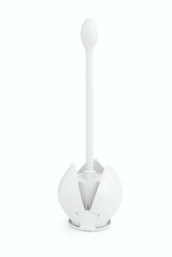 Plastic toilet brush with unique lotus inspired opening function. Designed to modernise the bathroom while keeping it clean at the same time.