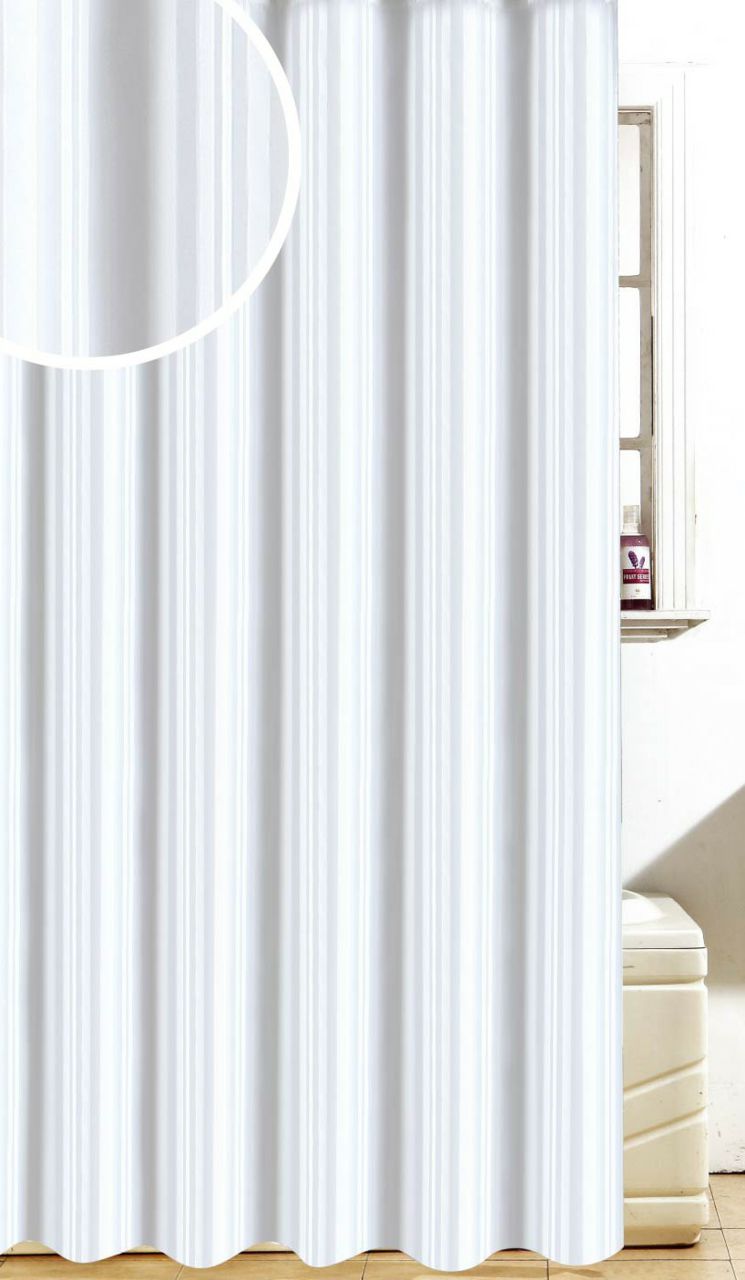 Satin stripe polyester shower curtain 300×200 with weighted hem reinforced eyelets and hooks