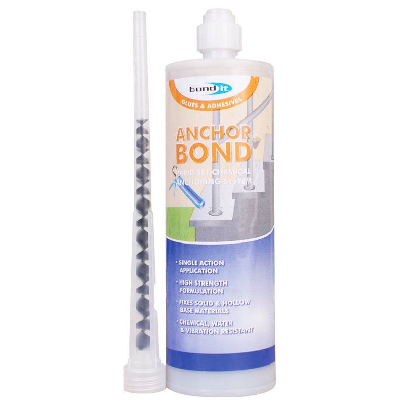 A 2-part system applied in one single action to produce a cost-effective, tough chemical resistant fixing. Ideal day to day applications include: railings, steel structures, satellite dishes, fire surrounds, gates, sanitary fixings/towel holders, pipes and lamps. Use of Anchor Bond makes the fixing an integral part of the substrate as the load is spread throughout the entire fixing area as opposed to when plastic plugs or mechanical fixings are used especially in friable or cracked substrates.