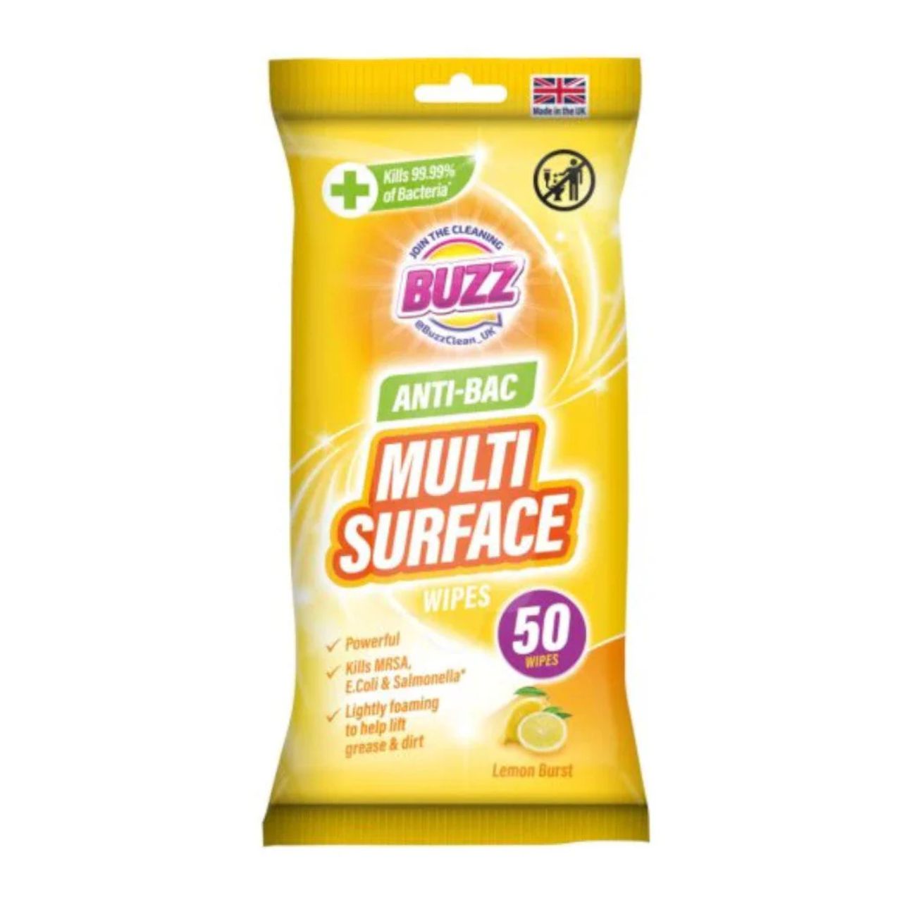 Buzz Surface Bac Wipes Lemon 50pk