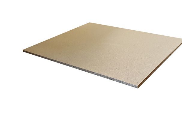 Made from graded wood particles glued and formed into layered mats. Panel can be trimmed and sanded to precise shapes.