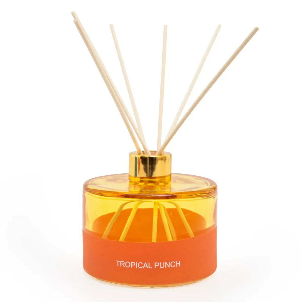 Beautiful two tone orange read diffuser in tropical scent, uniquely packaged with 250ml of fragrances oil.