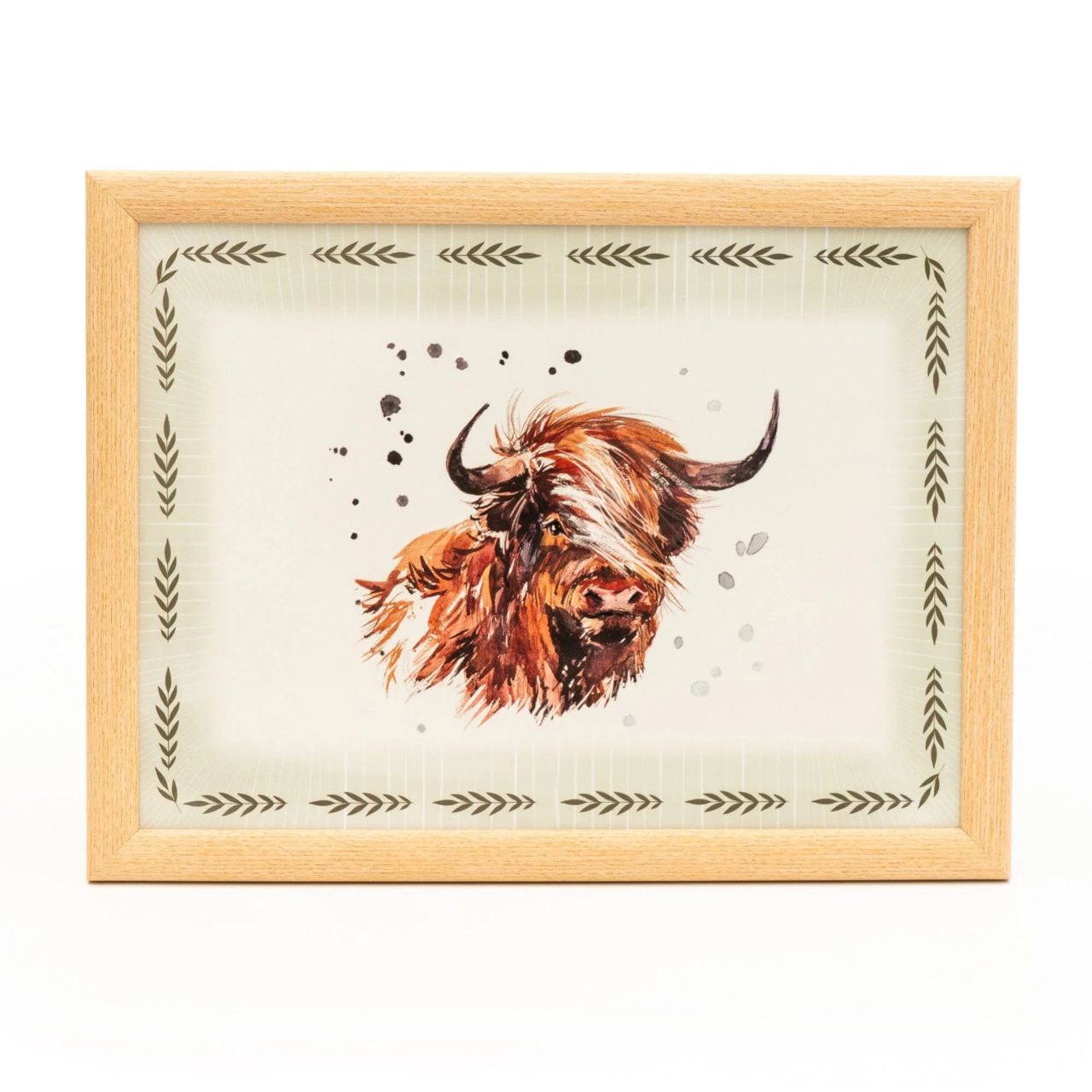 Expanding our Highland Cow range, this versatile lap tray is a popular addition, with a wipe clean tray and cushioned base. The Highland Cow Lap Tray is a charming and practical addition to your home essentials, perfect for those cozy days in. It features a vivid, heartwarming image of a Highland cow, bringing a touch of rustic charm to your meals or activities. This tray is designed with comfort and convenience in mind, featuring a cushioned base that conforms to your lap, providing stability and ease of use whether you’re enjoying breakfast in bed, working on a laptop, or indulging in a craft. The smooth, easy-to-clean surface ensures hassle-free maintenance, making it an ideal choice for both adults and children. Combining functionality with a whimsical design, this lap tray is a delightful companion for everyday living and leisure.