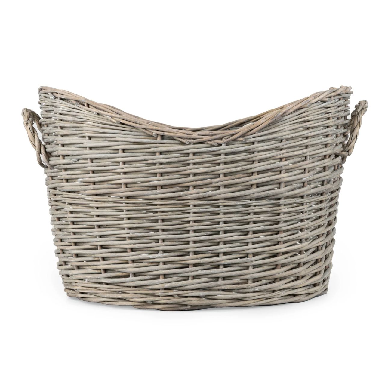 The Oval Scoop Log Basket in Grey is a practical yet stylish addition to any home, featuring a set of four baskets crafted from sturdy, grey-toned wicker that offers a natural, textured look. These baskets are designed with a deep, scooped shape perfect for holding logs near the fireplace or for storing blankets, magazines, or toys, enhancing both the functionality and aesthetics of your living space. The integrated handles make them easy to lift and move around, ensuring they are as practical as they are decorative. With their versatile design, these baskets are a must-have for keeping your home organised and tidy while adding a touch of rustic charm.