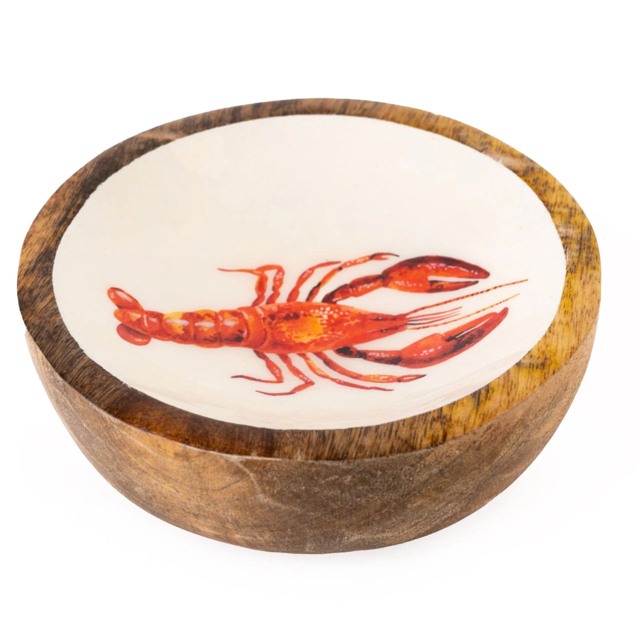 The Small Mango Wood Dish in Lobster showcases a charming lobster design. Ideal for serving small snacks or as a decorative accent, this dish adds a touch of coastal elegance and personality to your table setting. Its playful lobster motif and warm mango wood finish make it a stylish and unique addition to any nautical-themed decor.