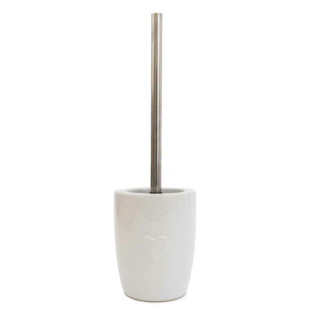 Our gorgeous white toilet brush and holder with an embossed heart on the side of the vessel are finished with a glaze to give them a wonderful sheen.