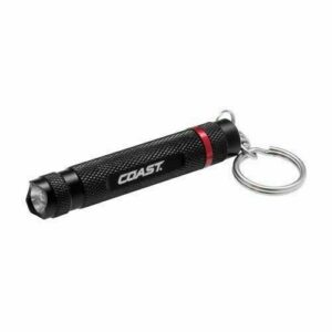 Coast TX22R Flashlight. 10.3″ overall. Water resistant. Impact resistant. Rechargeable. 320m beam distance. Turbo (5300 lumens); High (2080 lumens, 4h 45m runtime); Medium (540 lumens, 7h 45m runtime); Low (130 lumens, 32h runtime). ZX-965 ZITHION-X rechargeable battery (included). Beam lock. Long range focusing optic. Slide focus. Built-in USB port., or (6) AA batteries (included). Aluminum construction. Color: Black. Boxed.