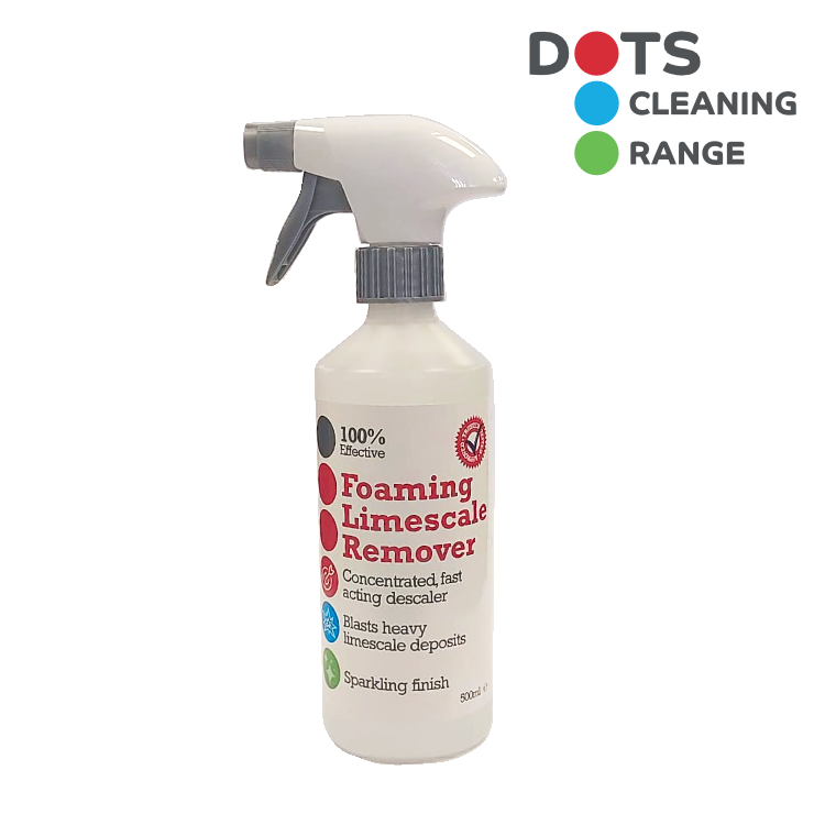 Experience the power of DOTS Foaming Limescale Remover and say goodbye to unsightly limescale and grime, welcoming a fresh, sparkling clean ambiance into your home or workspace!