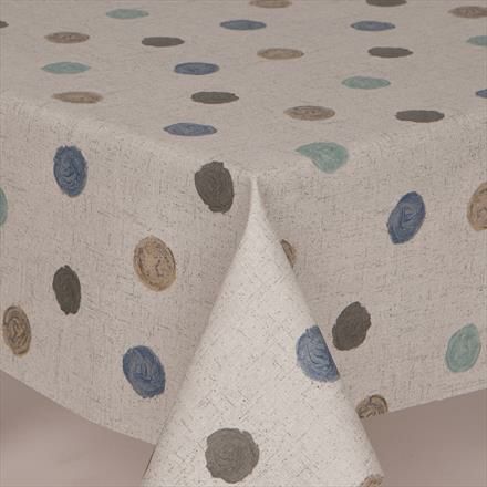 50% Cotton / 50% polyester table covering with a resin treatment which protects against stains without losing the textile appearance.