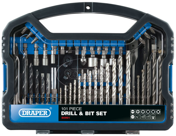 A varied and universally useful drill bit and accessory set. Supplied with 101 pieces suitable for a host of tasks. Perfect for both power tools and hand tools, and Supplied in a robust plastic carry case.15 x HSS drill bits 1.5, 2, 2.5, 3, 3.2, 3.5, 4, 4.5, 4.8, 5, 5.5, 6, 6.5, 7, 8