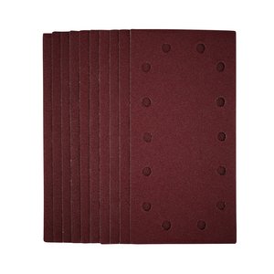 This pack of 1/2 sanding sheets (115 x 230mm) are made from premium quality aluminium oxide that is resin bonded to provide improved grain adhesion, anti-static qualities and long-lasting performance. The heavy-duty E-Weight backing paper makes the sanding sheet more durable – able to withstand the toughest jobs. The hook and loop backing offers decent adhesion to facilitate the fast changing of sanding sheets. The 14 pre-punched 8mm holes improve dust extraction. Ideal for sanding and finishing wood, metal, aluminium alloy, painted surfaces, plastic and fillers. Compatible with most 1/2 sanders with hook and loop including Stock No. 57941.1 x 1/2 Sanding Sheets with Hook and Loop, 115 x 230mm, 40 Grit (Pack of 10)Size: 115 x 230mm