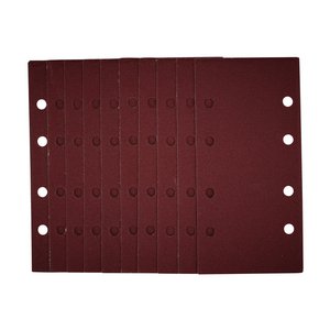 This pack of 1/3 sanding sheets (93 x 190mm) are made from premium quality aluminium oxide that is resin bonded to provide improved grain adhesion, anti-static qualities and long-lasting performance. The heavy-duty E-Weight backing paper makes the sanding sheet more durable – able to withstand the toughest jobs. The hook and loop backing offers decent adhesion to facilitate the fast changing of sanding sheets. The eight pre-punched 8mm holes improve dust extraction. Ideal for sanding and finishing wood, metal, aluminium alloy, painted surfaces, plastic and fillers. Compatible with most 1/3 sanders with hook and loop including Stock No. 57839.1 x 1/3 Sanding Sheets with Hook and Loop, 93 x 190mm (Pack of 10)