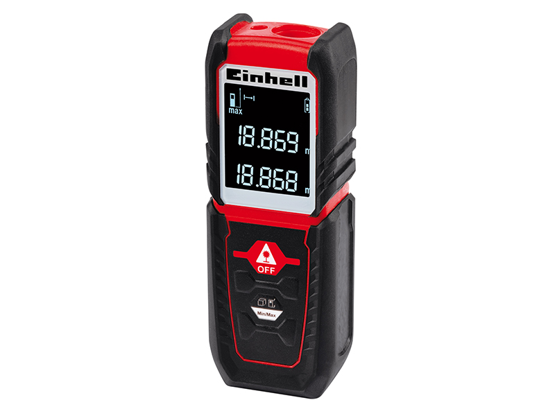 The Einhell TC-LD 25 Laser Measuring Tool is a small and handy pocket-sized tool for measuring distance, area and volume. Variable settings allow measuring from either the front or rear edge of the tool and the Min./Max. function allows continuous measurements. The body is fitted with a soft grip, making it comfortable to handle.