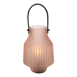 The white frosted glass lamp showcases a curved shape and textured design. Its LED light creates an ambient mood when displayed in the lounge or bedroom.
