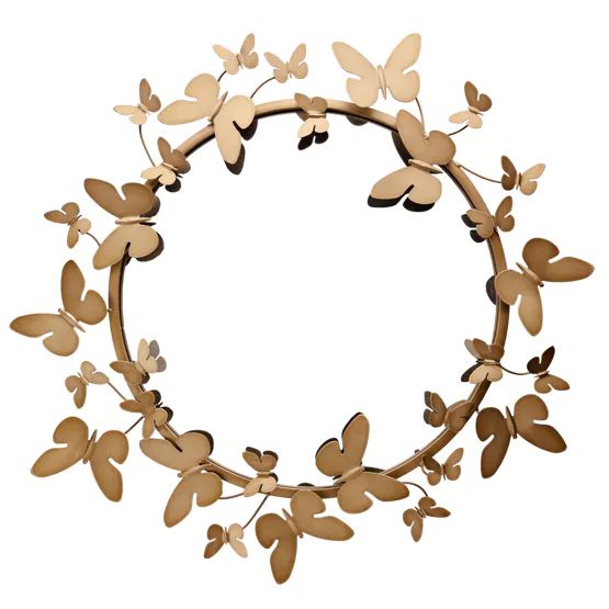 The circular mirror features a gold metal frame and 3D butterflies which makes for an exquisite focal point for any lounge or bedroom.