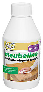 HG meubeline for light-coloured woods removes stains and white water and alcohol rings from all types of light wooden furniture. Grey or bleached furniture regains its natural colour and the furniture shines like new. Even scratches on the furniture are camouflaged!