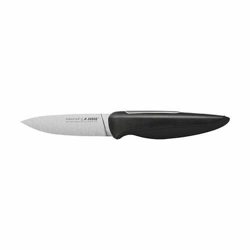 This Judge Sabatier IP Paring Knife will soon become a mainstay of your kitchen. Small but mighty, this useful knife can peel, chop and slice your fruit and vegetables, making short work of those intricate and delicate tasks. The combination of stainless steel blade and easy-grip handle ensures great results. A modern twist on a classic knife. High-grade stainless steel blades with multi tactile handles for a sure grip. Serrated edge for smooth slicing of breads. Easy to sharpen.
