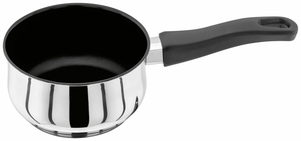 This high quality mirror polished stainless steel milk pan with the toughest, most durable non-stick is perfect for warming milk, heating soups or making delicious sauces. The high-performing non-stick means little to no oil is required, making it the perfect milk pan for a healthy diet and an easy clean. This Judge Vista non-stick milk pan is compact in size and is therefore easily stored in any kitchen. Impressive performance with even heat distribution on all hob types thanks to the ‘hot forged’ base. Easy to clean and long lasting thanks to the Excalibur non-stick coating – toughest, most durable non-stick that combines the toughness of stainless steel with the release properties of the best non-stick. Safe and secure handling thanks to easy grip, comfortable, phenolic low-heat transmission handles