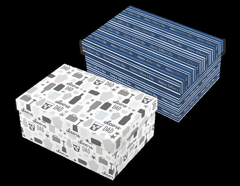 Each Father’s day rectangle foil box is designed with father’s day prints including “happy father’s day” and “cheers dad”.