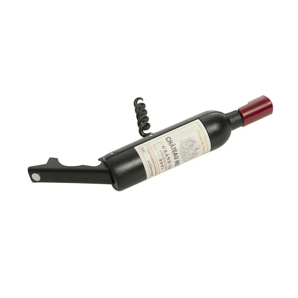 A novelty stocking filler, for all those wine lovers out there. A bottle opener and corkscrew all-in-one. Made from plastic in the shape of a wine bottle with a corkscrew inset, complete with a French wine print to the front. Present in wine crate styled gift box. Store as a handy fridge magnet or on the side of your wine cooler.