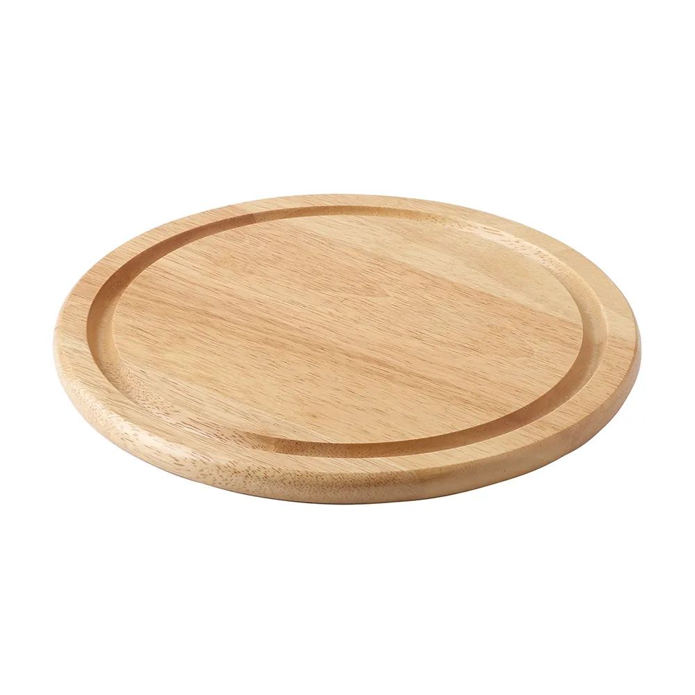An attractive bread board in round shape with carved channel for catching crumbs.