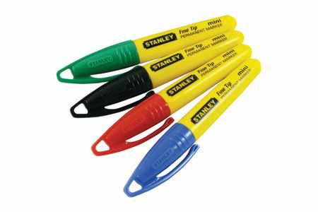 Stanley Mini Fine Tip Marker Pen with quick drying, water- and oil-resistant ink, which marks on almost any surface. Supplied in a container with 72 pens.