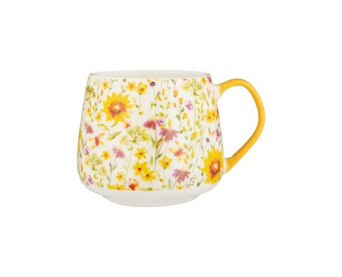 Made from fine china, the Price & Kensington Sunflower Mug features hand painted watercolour sunflowers & daisys with a contrasting dipped coloured handle.