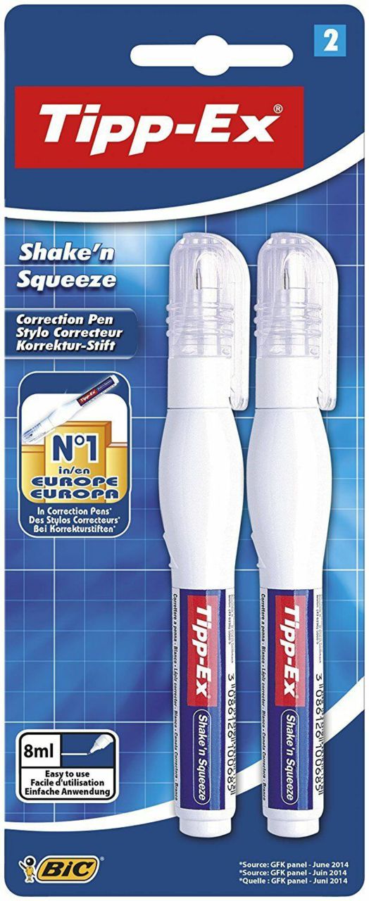 Tipp-Ex Shake’n Squeeze Correction Fluid Pen, 8 ml. Each squeezable pen contains 8 ml of high-quality correction fluid that covers up any mistakes you might make. Tipp-Ex Rapid Correction Fluid. Tipp-Ex Mini Pocket Mouse Correction Tape.