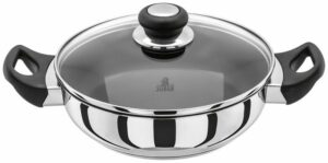 Made from stainless steel with black handles. Its suitable for gas, electric, ceramic, induction and halogen hob. Dishwasher safe.