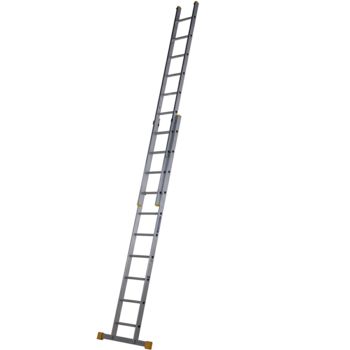 This 722 Series 2.97m double section extension ladder is made from high grade aluminium and extends to 4.92m. With box section stiles designed to ensure the ladder is lightweight but strong, this ladder is a ideal for jobs around the work site. Features include manual thumb operated locking catches to prevent sections separating, slip resistant D-shaped rungs and a wide stabiliser for added safety during use. Approved to the latest EN131 standard. For Professional Use.