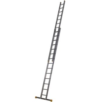 This 722 Series 4.09m double section extension ladder is made from high grade aluminium and extends to 7.16m. With box section stiles designed to ensure the ladder is lightweight but strong, this ladder is a ideal for jobs around the work site. Features include manual thumb operated locking catches to prevent sections separating, slip resistant D-shaped rungs and a wide stabiliser for added safety during use. Approved to the latest EN131 standard. For Professional Use.